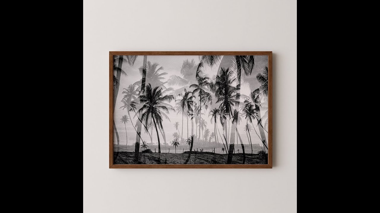 Produzida com câmeras antigas e filmes vencidos, esta fotografia em preto e branco é revelada manualmente pela artista, resultado em uma composição única que sobrepõe camadas de coqueiros e cria uma atmosfera onírica e atemporal, perfeita para quem valoriza arte com alma e história.